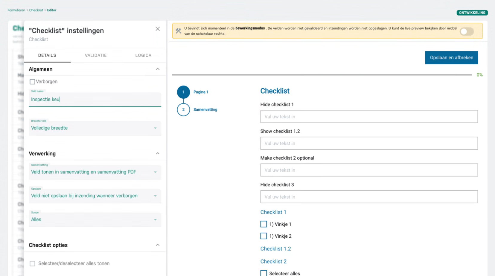 - Het is nu mogelijk om een checklist-veld toe te voegen aan een formulier.